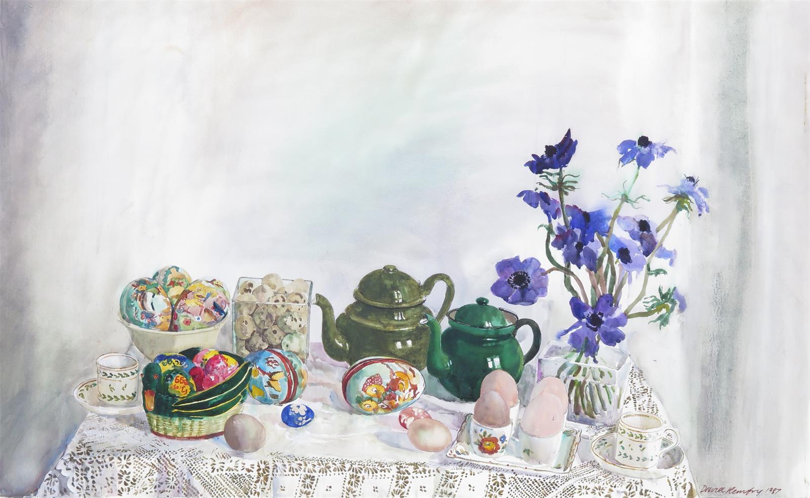 ‡David Remfry R.A. (b.1942) Still life with Easter eggs Signed and dated 1987 Watercolour 62 x...