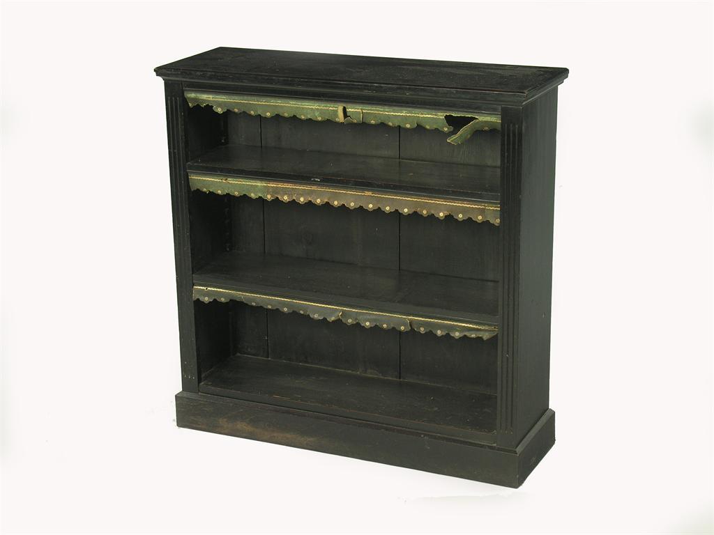A late Victorian ebonised low bookcase, with adjustable shelves, 36.25in (92cm) h, 36in (91.4cm) w, 12in (30.5cm) d.
