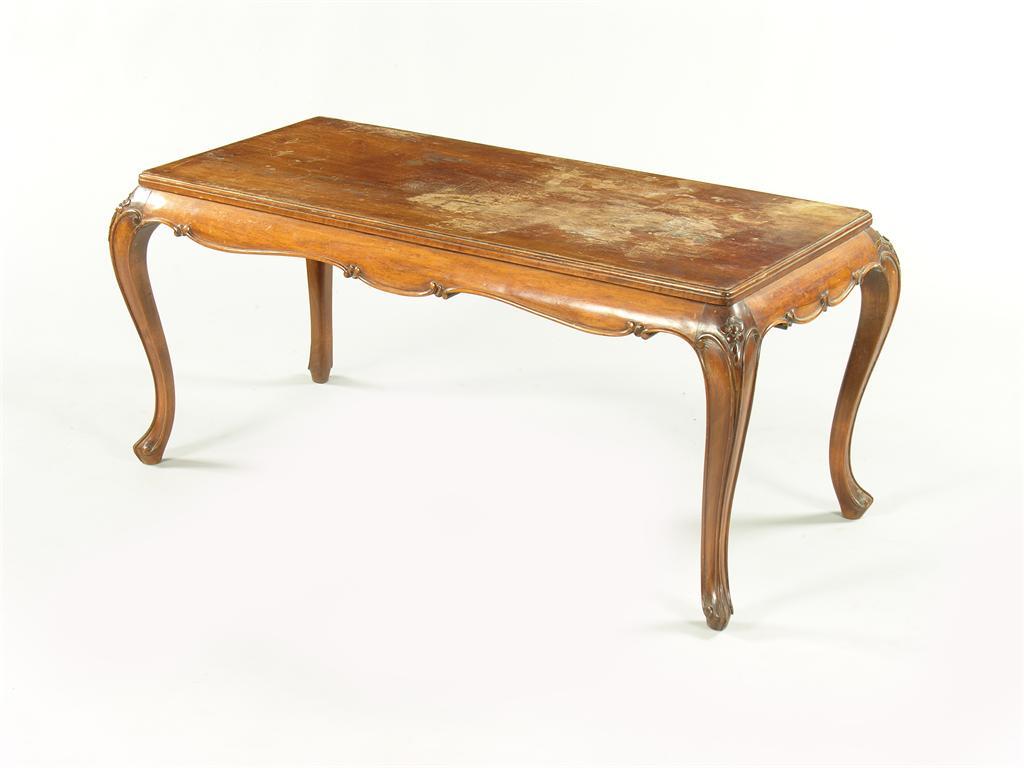 A walnut coffee table, on floret and carved cabriole legs with a shaped frieze, stamped '6898', 20.25in (51.4cm) h, 45in (114.3cm) w, 21.5in (54.5cm) d.