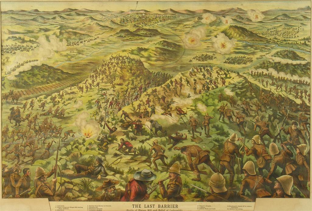 Boer War Interest. A chromolithograph, 'The Last Barrier (Battle of Pieters Hill and Relief of Ladysmith', 18.75 x 27.5in (47.5 x 70cm).