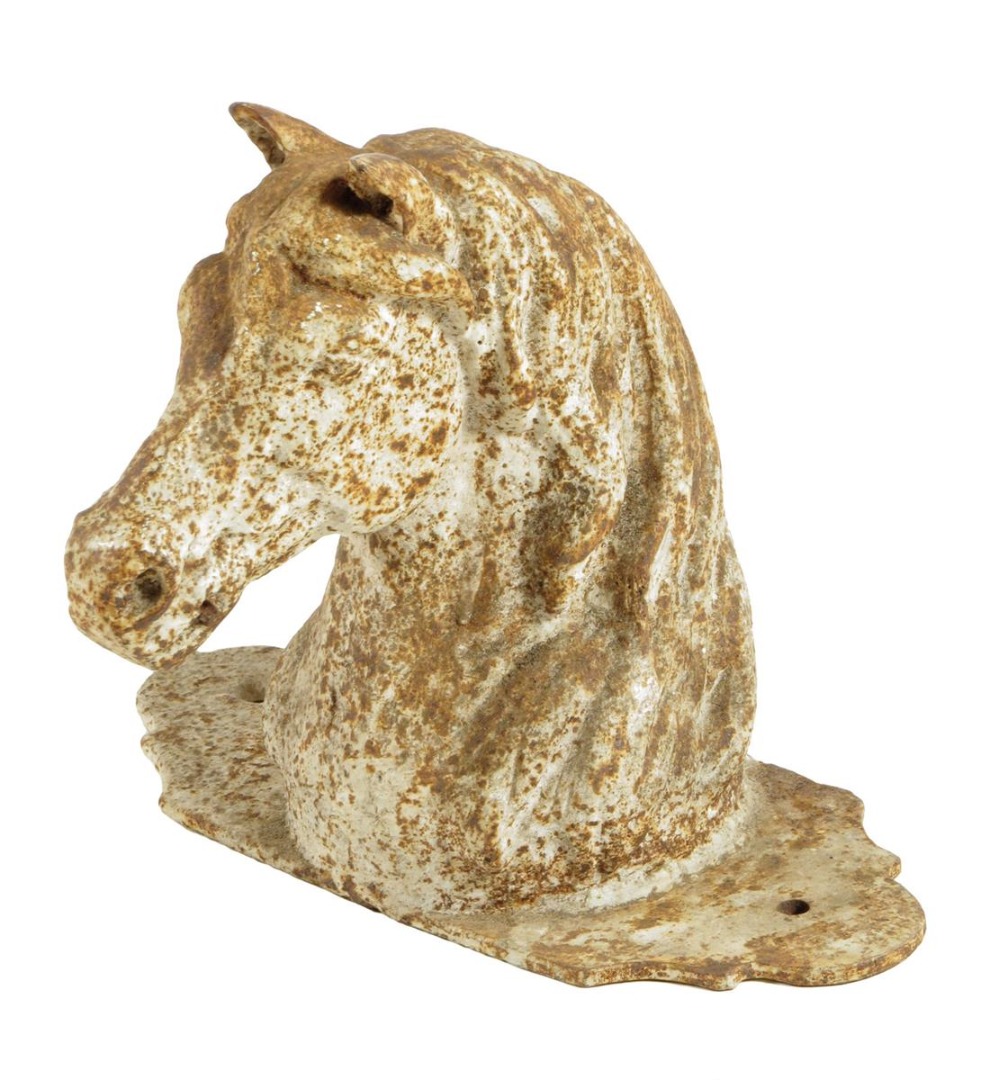 A Victorian cast iron horse tether, in the form of a horse's head, 26.8cm high, 33cm wide.