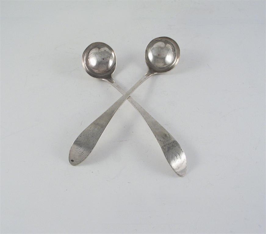 Irish provincial: a pair of George III bright engraved toddy ladles with pointed ends, initialled 'EC' by John Whelpley, (WHELPLEY, STERLING) Cork, c.1800, 3.2oz. (2)