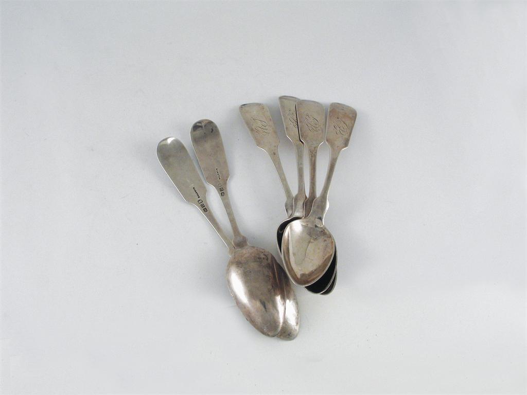 A set of six early 19th century American teaspoons