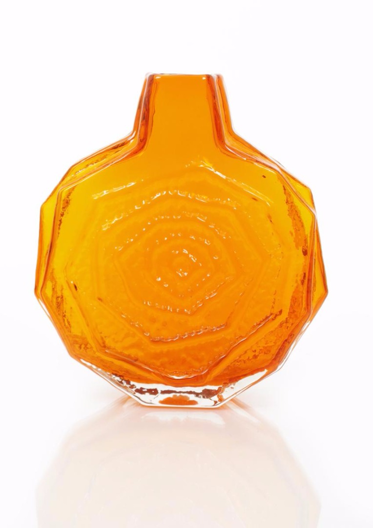 A Whitefriars Tangerine glass Banjo vase designed by Geoffrey Baxter