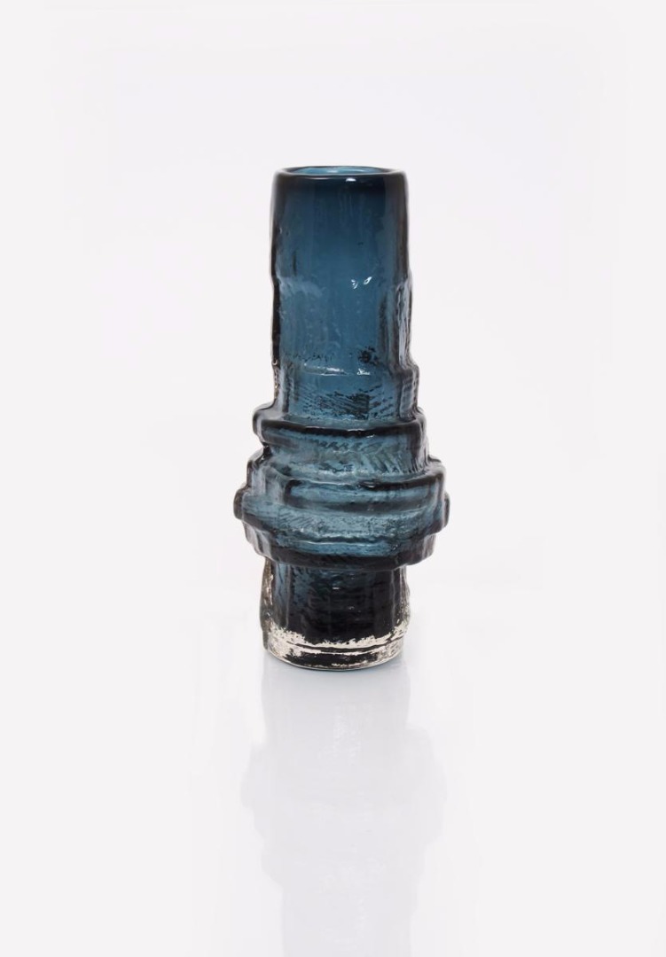 A Whitefriars Indigo glass Hoop vase designed by Geoffrey Baxter, 29cm. high