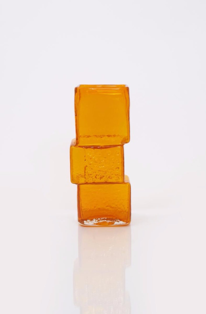 A Whitefriars Tangerine glass Drunken Bricklayer vase designed by Geoffrey Baxter