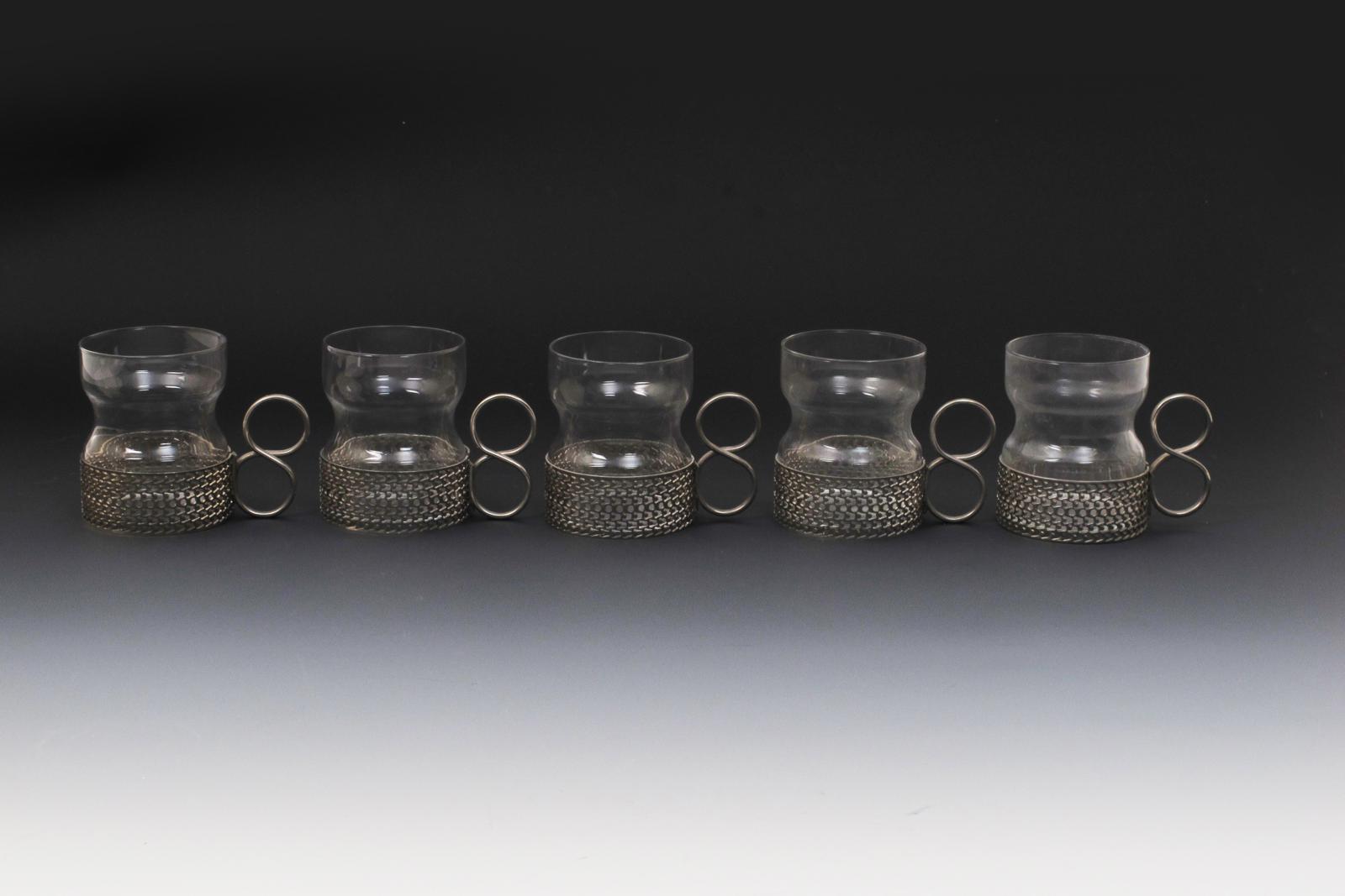 A set of eight Tsaikka metal mounted glasses designed by Timo Sarpaneva