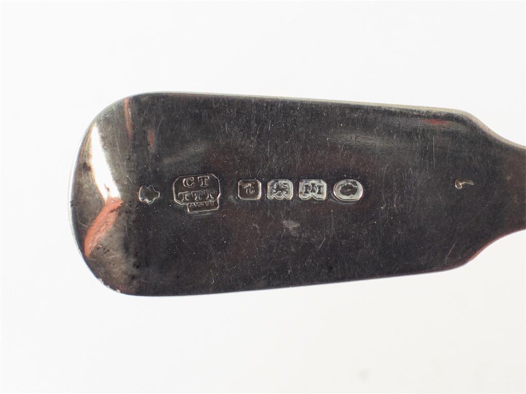 A William IV provincial fiddle tablespoon, initialled "CT", maker's mark of Charles & Thomas Terret Taylor of Bristol (overstriking another) and Exeter Hallmarks for 1835, 1.6oz.