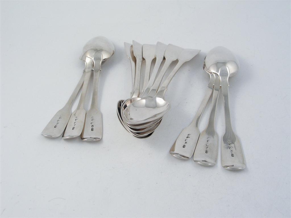 A set of twelve Victorian, York-made fiddle dessert spoons, by James Barber, 1857, 15oz. (12)