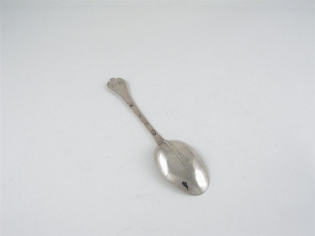A William III trefid spoon, with a bead and ribbed rattail, scratched "EB", by William Matthew, London 1700, 7.5in (19cm) long, 1.25oz.