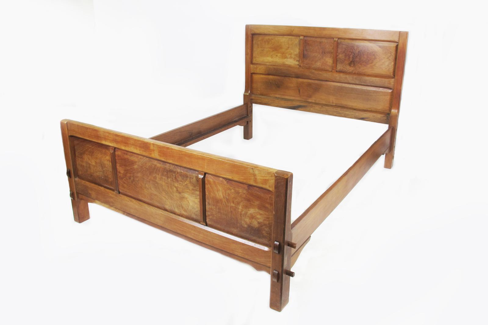 A Stanley Webb Davis walnut double bed dated 1935, with pegged joints incised cartouche date to bed head, 208 x 148cm.