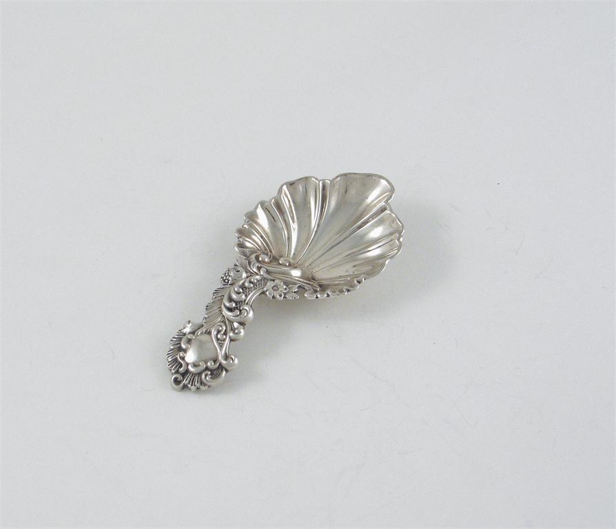 A Victorian 'stamped' caddy spoon, of asymmetric outline with a fluted bowl and vacant cartouche, by Aaron Hadfield, Sheffield 1847.