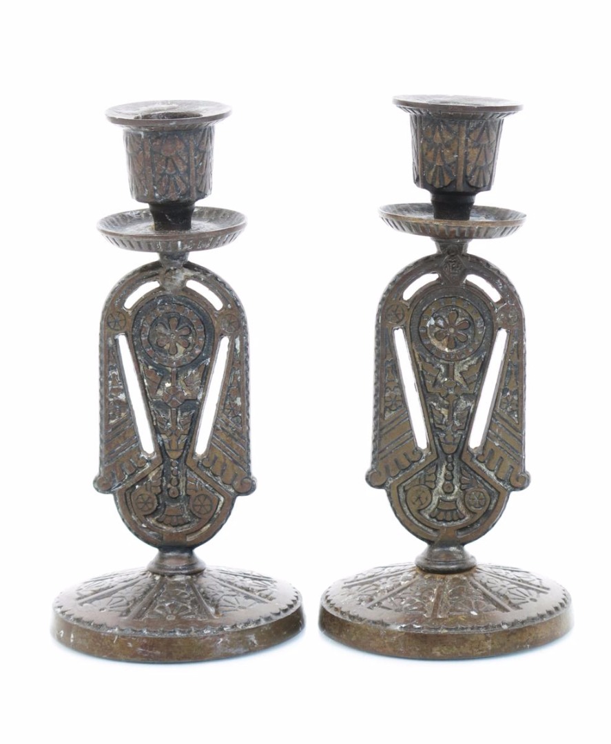 A pair of William Impey Aesthetic Movement cast iron candlesticks