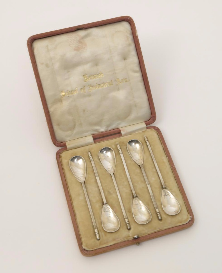 A set of six Keswick School of Industrial Arts silver teaspoons