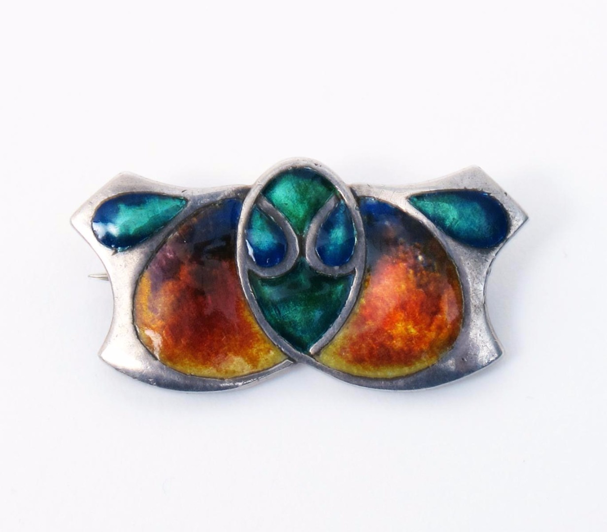 A Murrle Bennett silver and enamel bar brooch designed by Archibald Knox