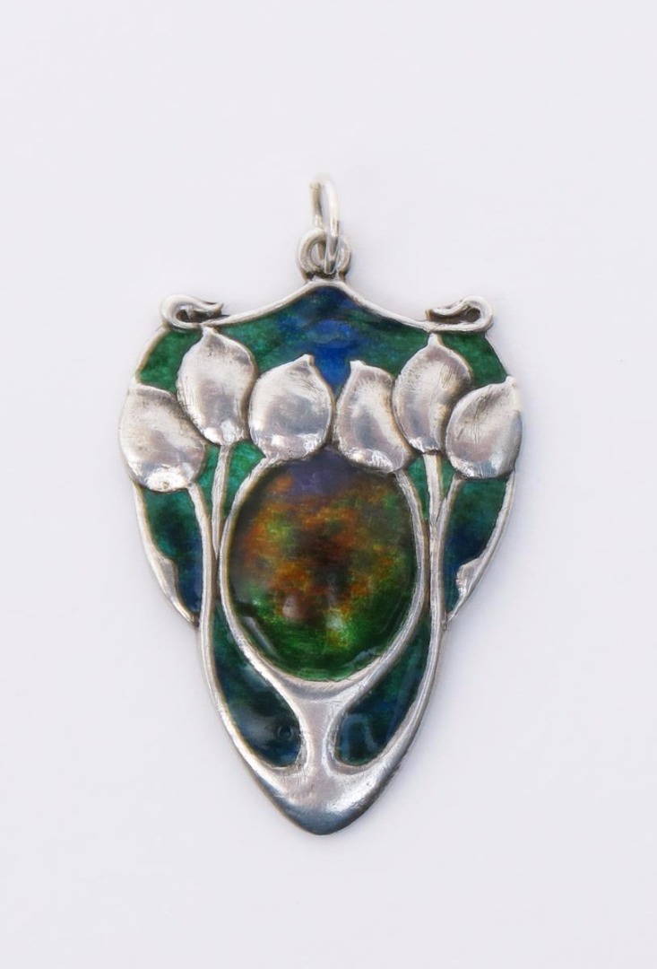 A Liberty & Co silver and enamel pendant designed by Archibald Knox