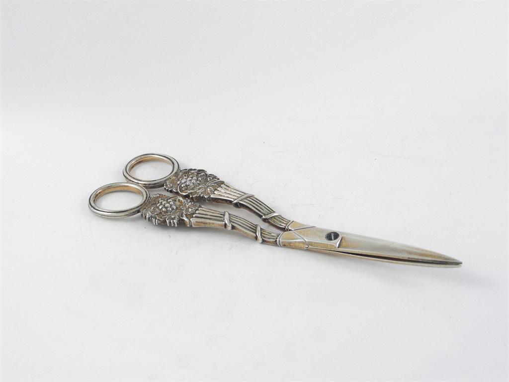 A pair of George III silvergilt grape scissors, with reeded fruiting stems, by W. Eley & W. Fearn, London 1818, 3.25oz.
