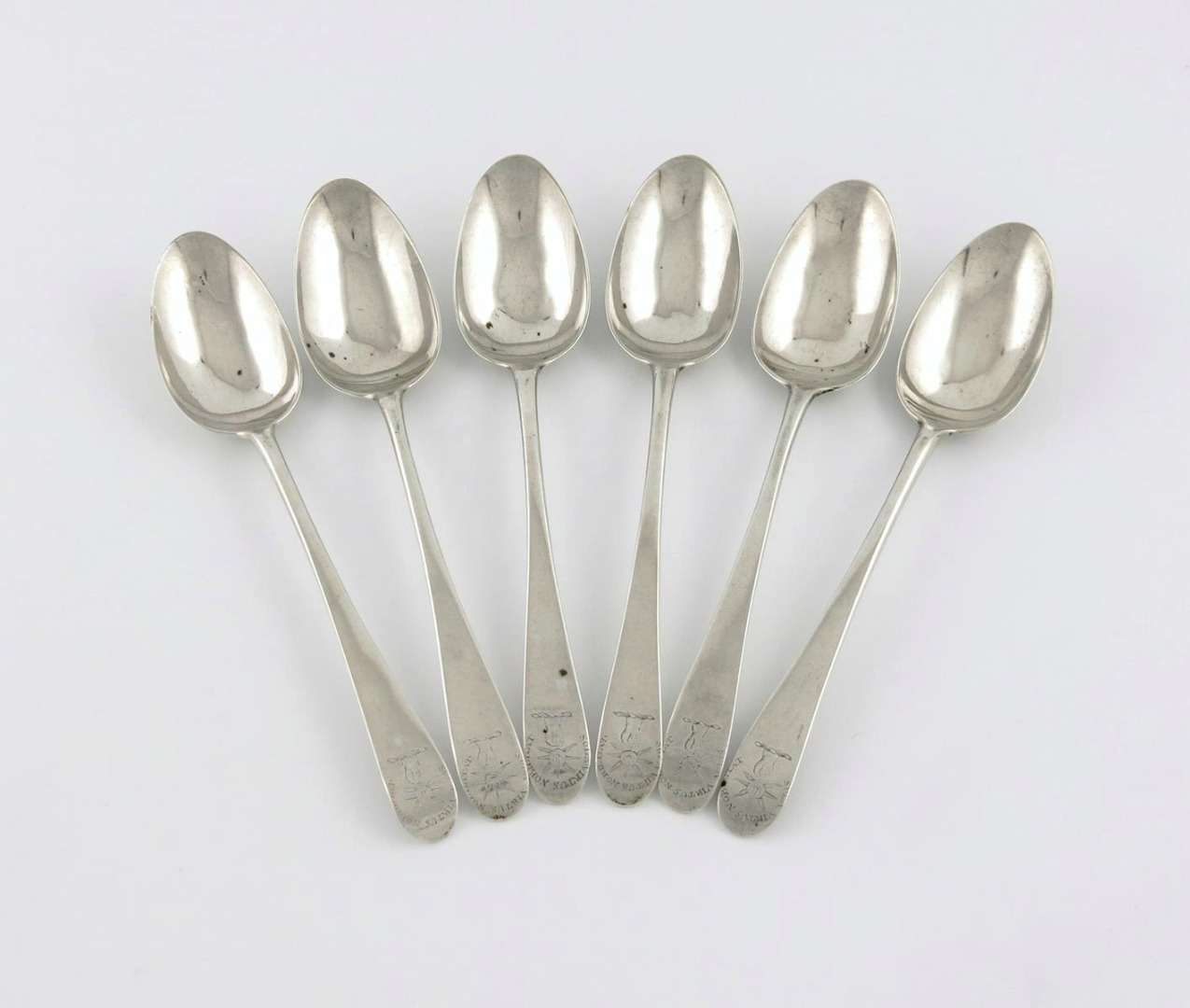 the terminals with a crest and motto, approx. weight 11.5oz. (6)