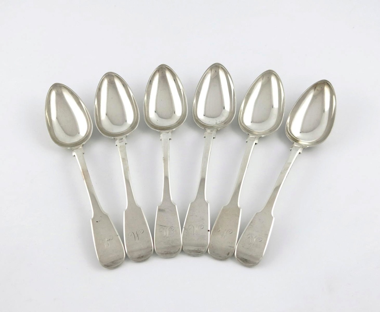A set of six early 19th century Scottish provincial silver Fiddle pattern tablespoons