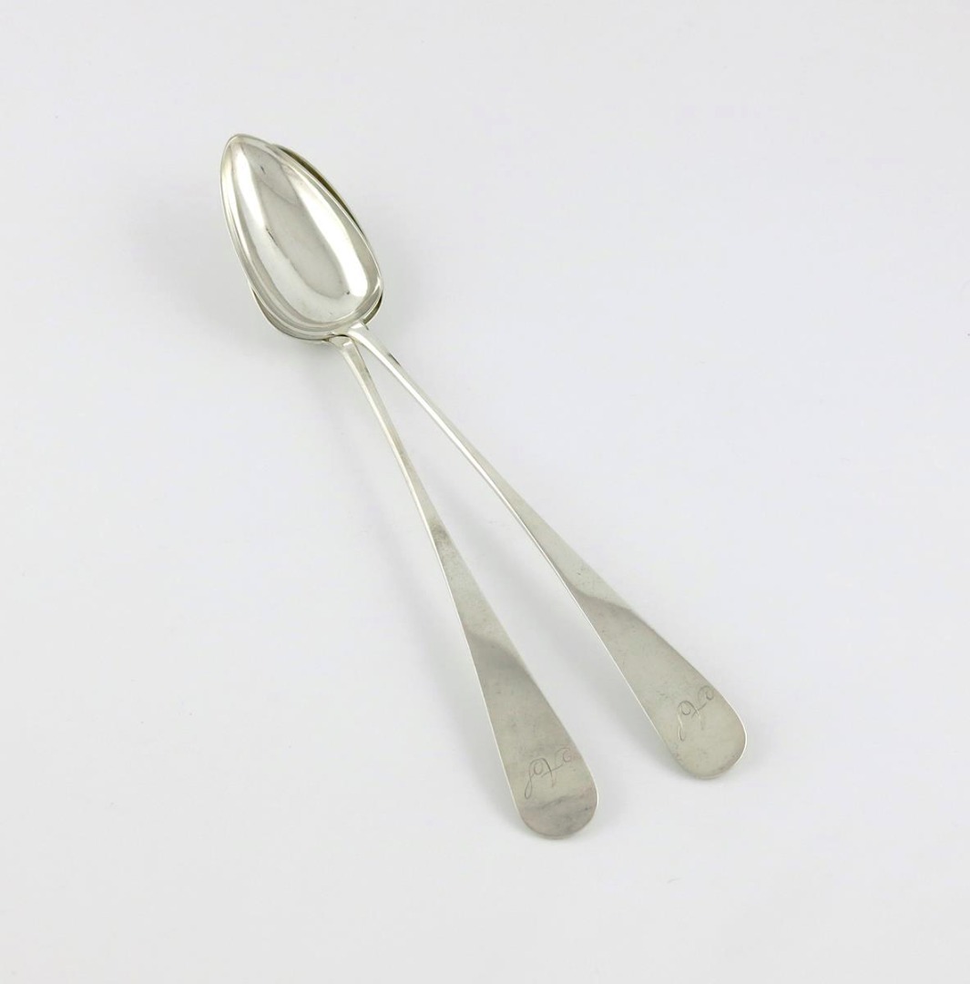 A pair of George III Scottish provincial silver Old English pattern basting spoons,