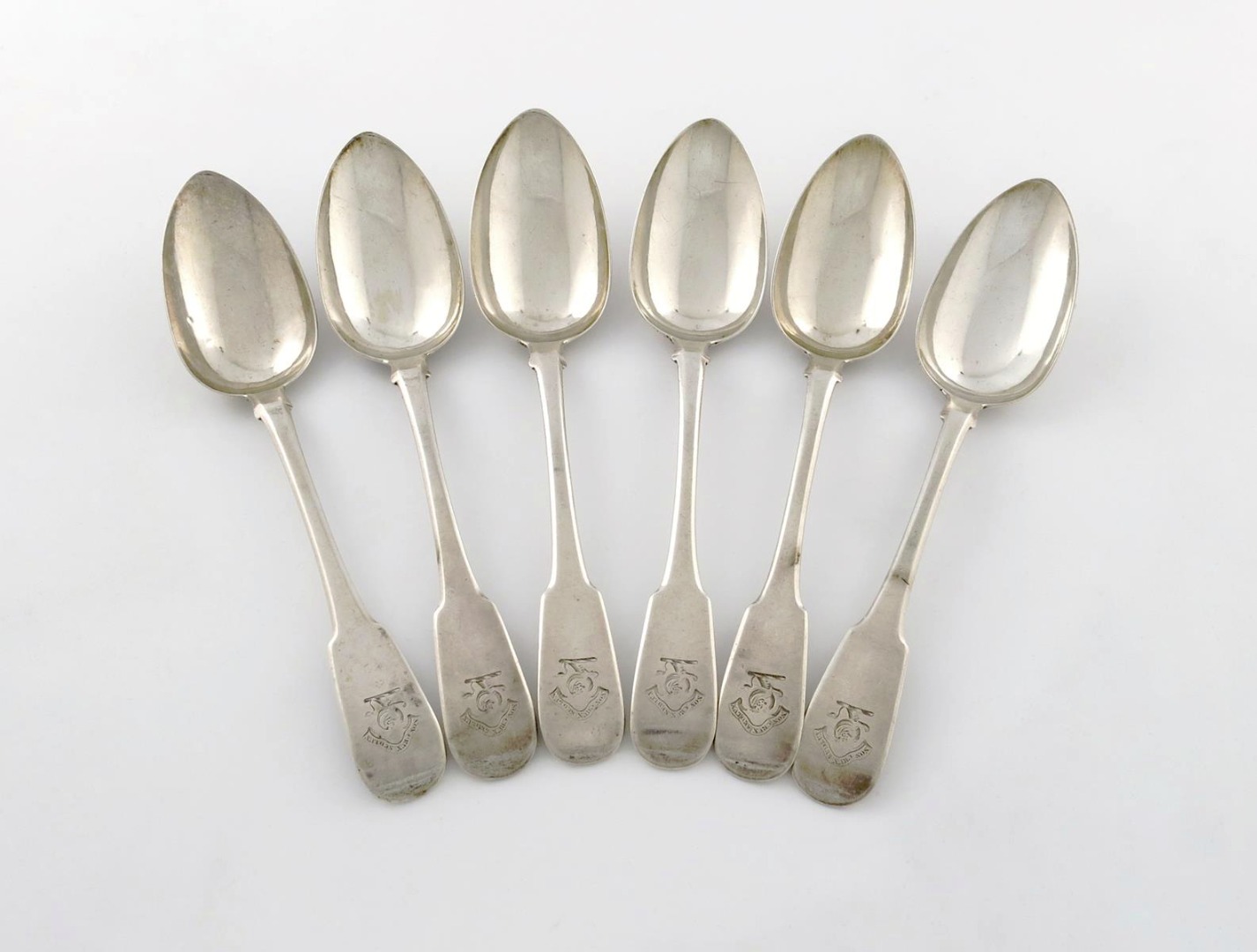 A set of six Scottish provincial silver Fiddle pattern tablespoons