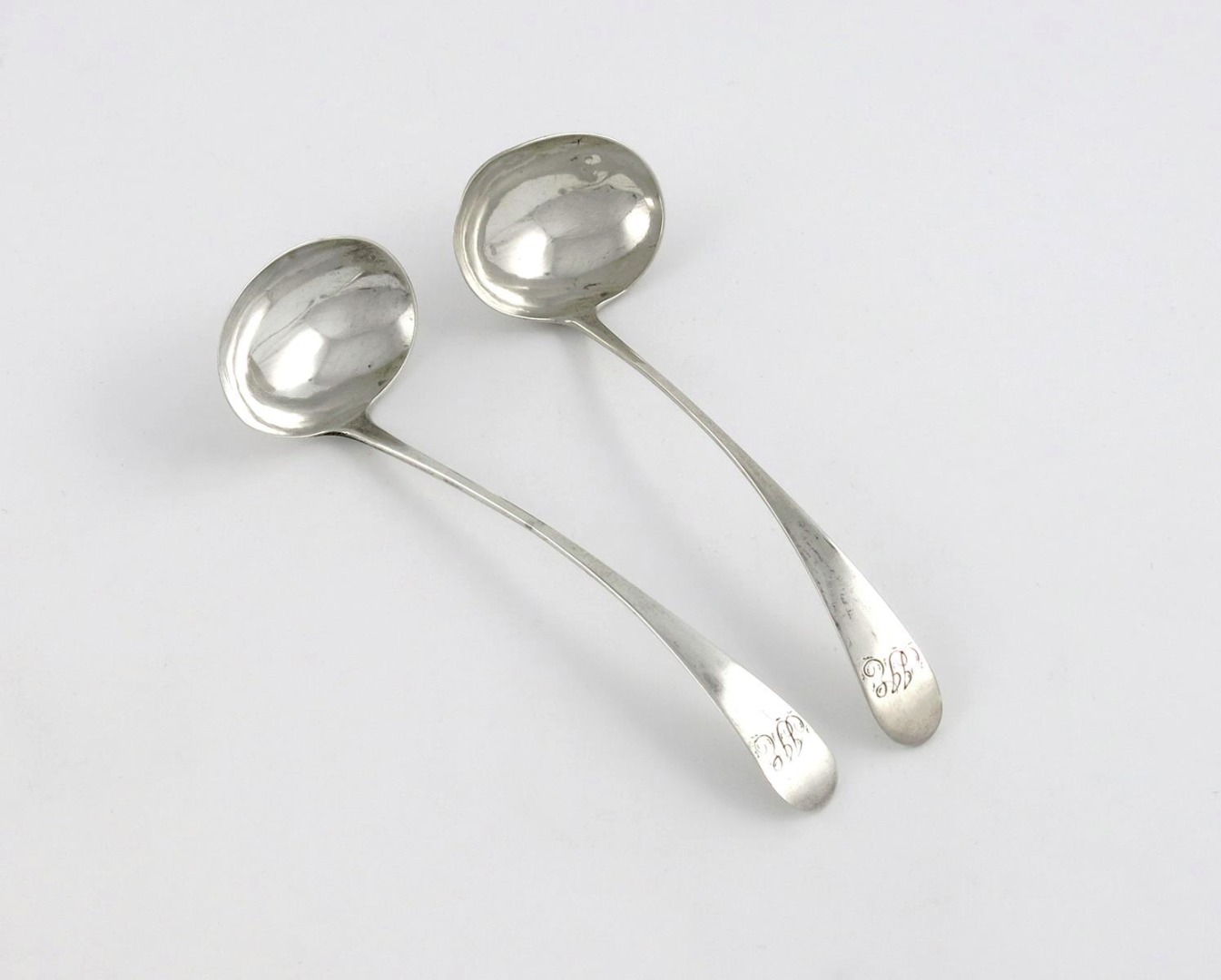 A pair of George III Scottish provincial silver Old English pattern toddy ladles