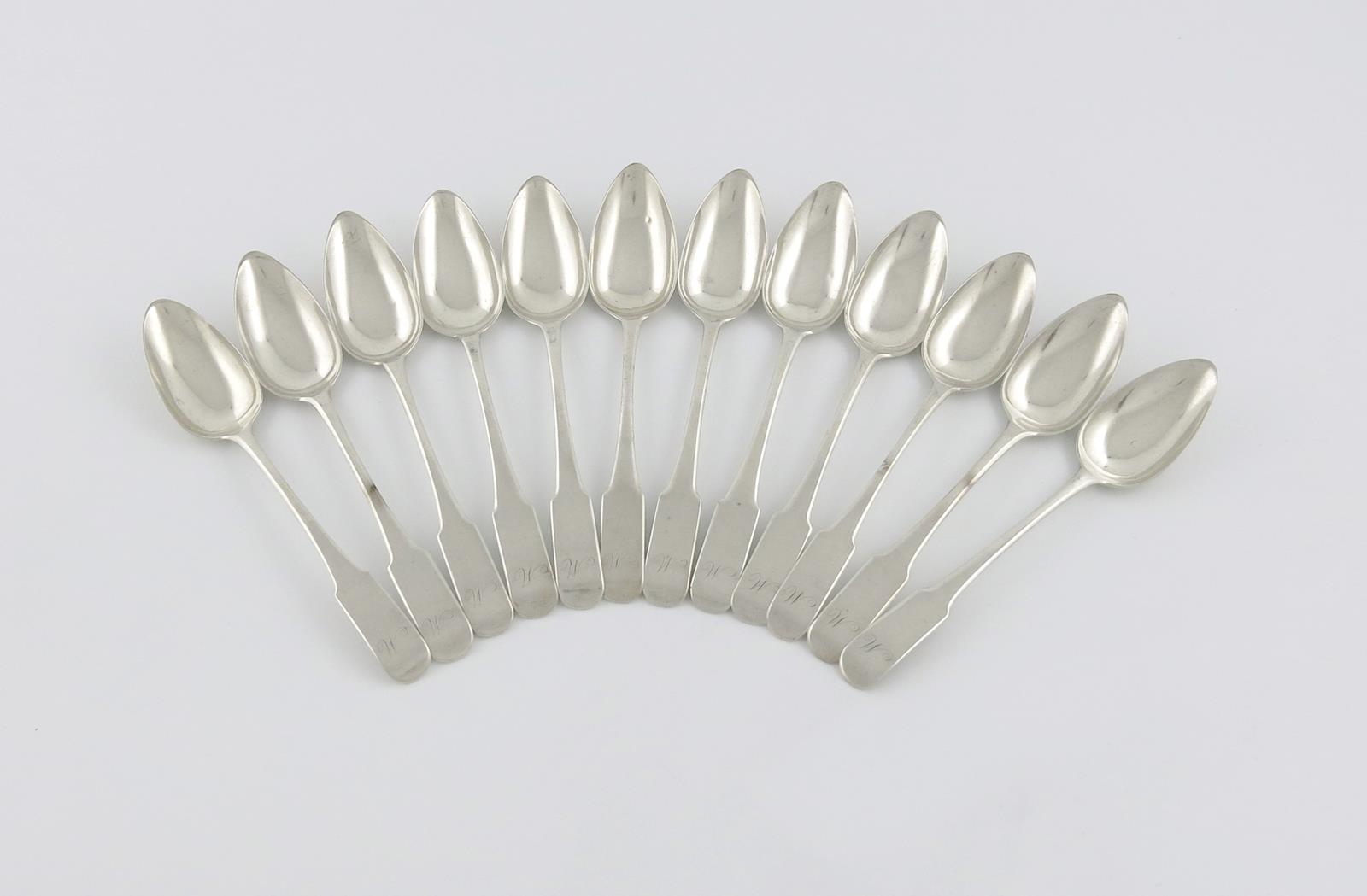 A set of twelve early 19th century Scottish provincial silver Oar pattern dessert spoons