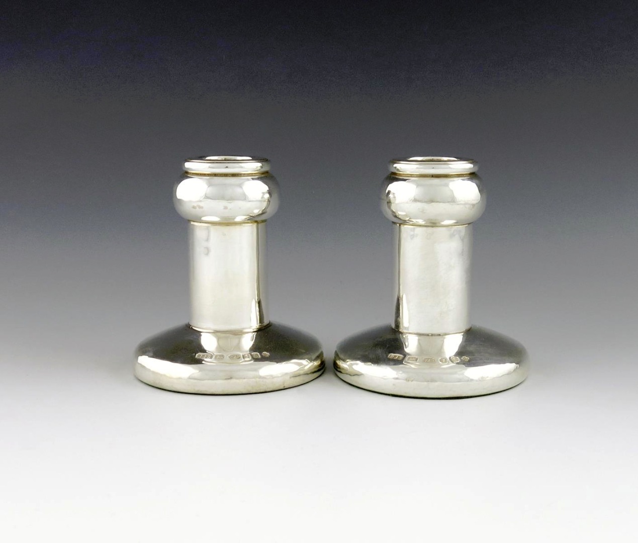 By Roger Squires, a pair of modern silver candlesticks,