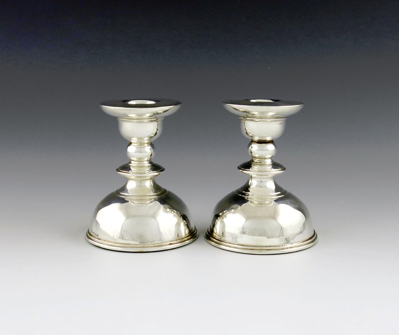 plain circular capitals, knopped stems, on raised circular bases, height 9.6cm. (2)
