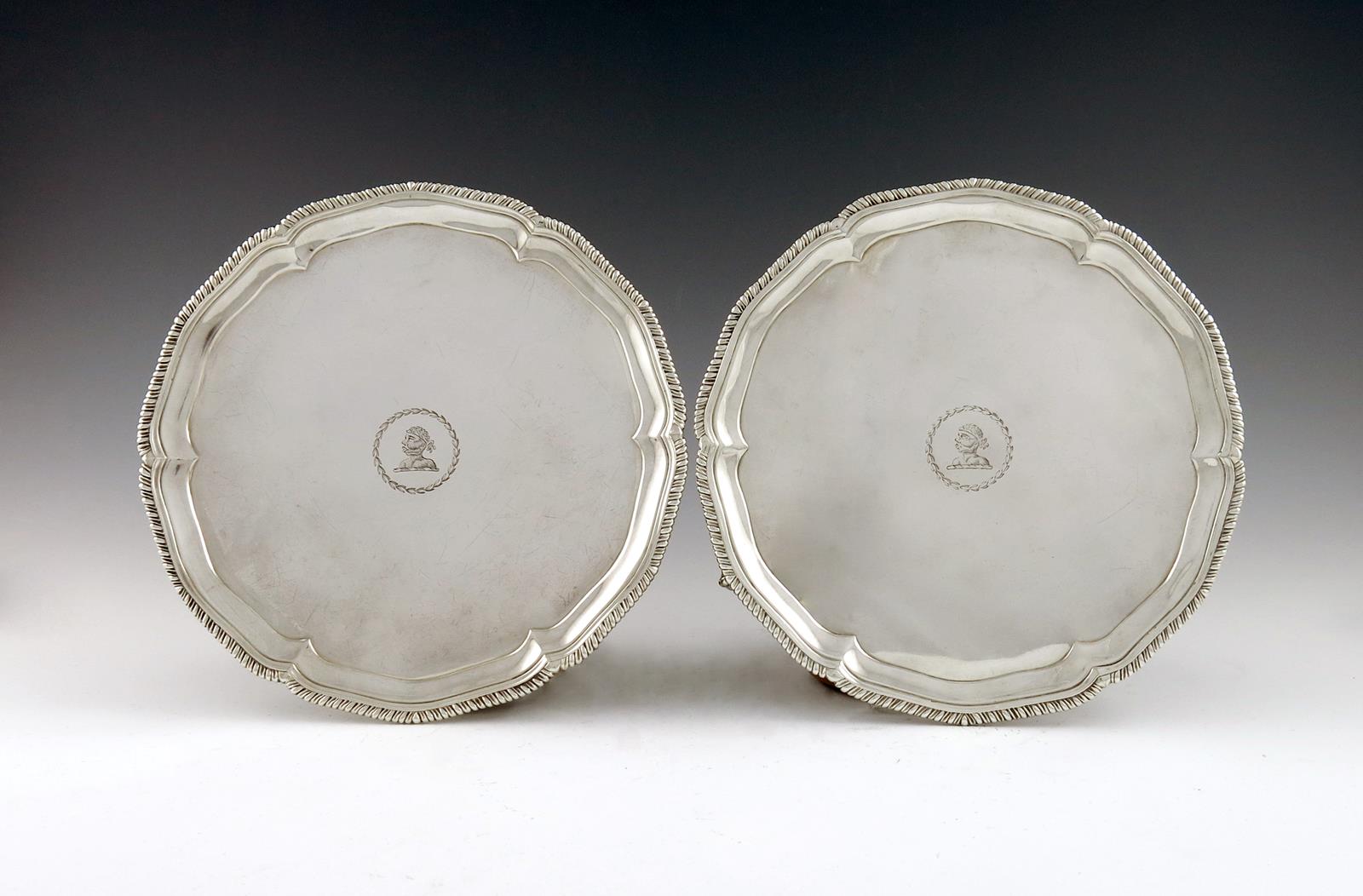 A pair of George III silver waiters