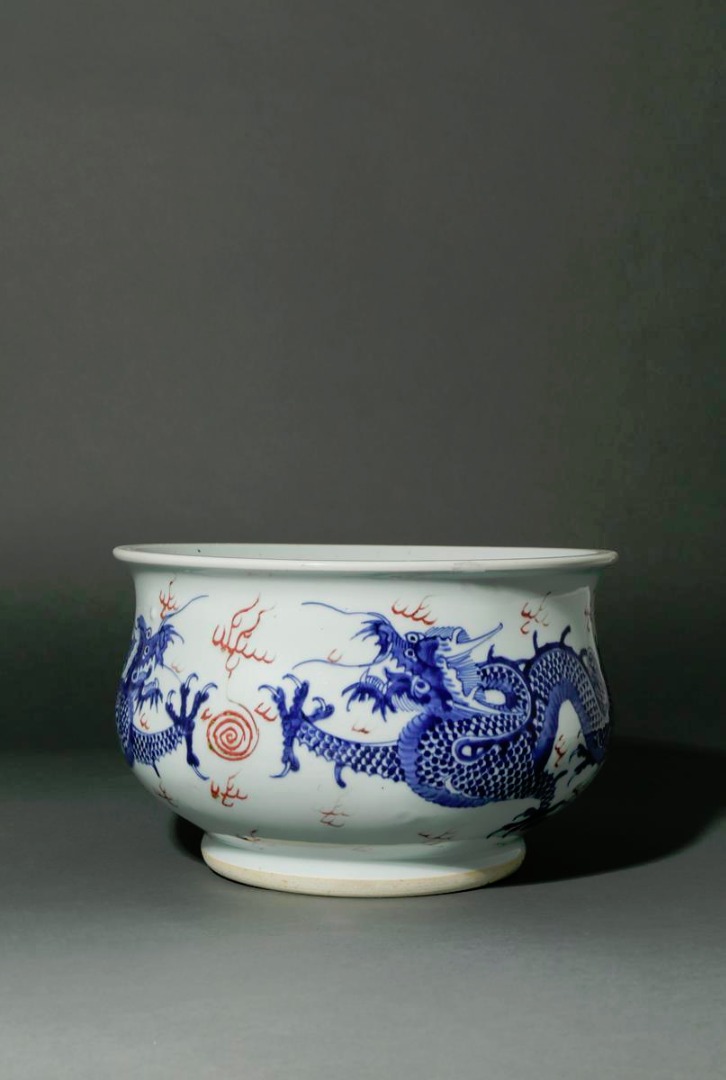 A CHINESE UNDERGLAZE BLUE AND COPPER-RED INCENSE BURNER