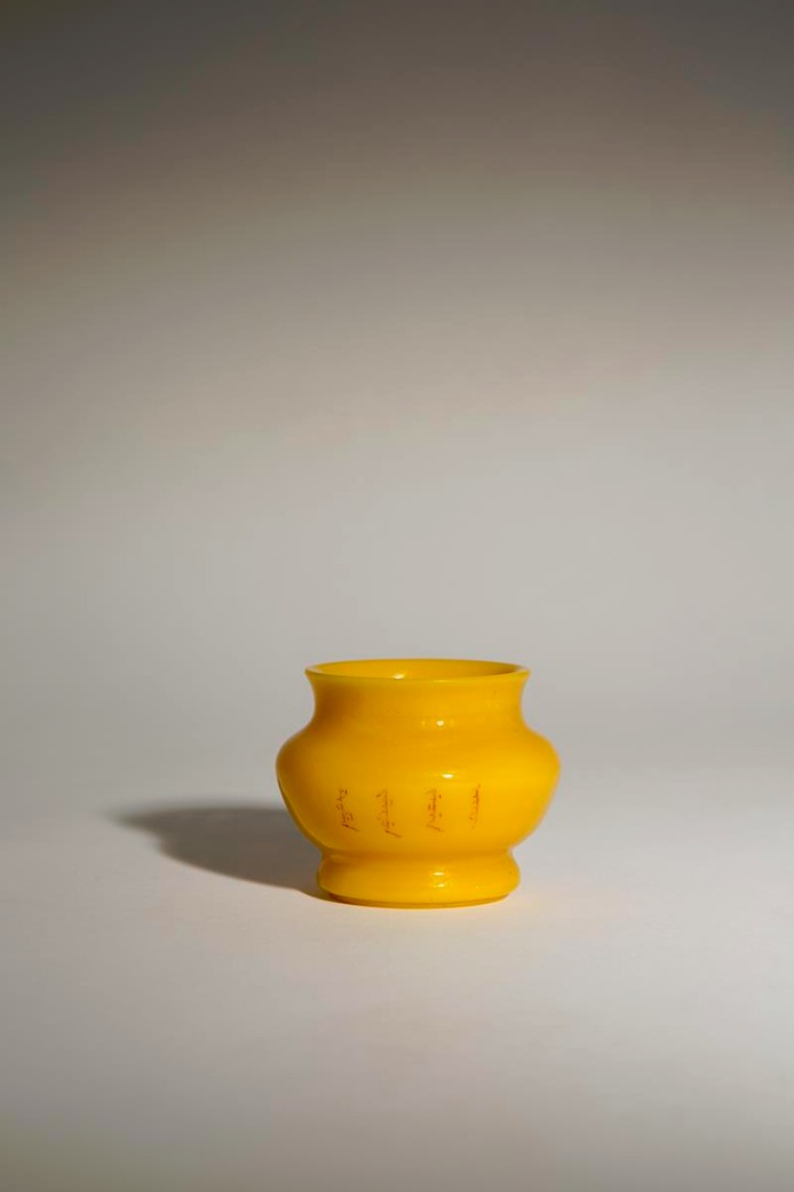 A RARE CHINESE BEIJING YELLOW GLASS WATER POT