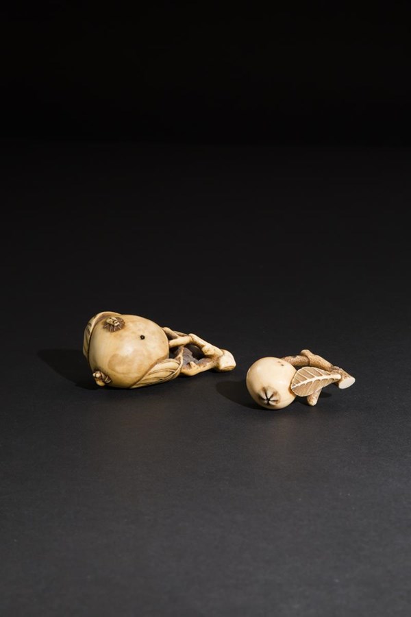 λ TWO JAPANESE IVORY NETSUKE MEIJI 1868-1912 Both depicting fruiting branches
