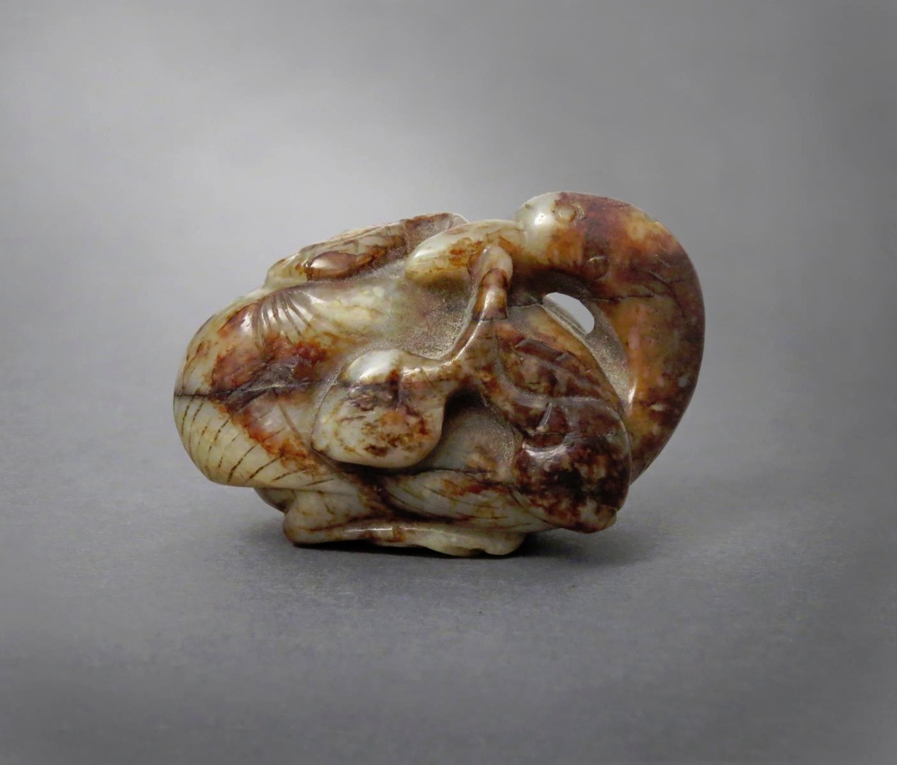 A CHINESE BROWN JADE CARVING OF A GOOSE MING/QING DYNASTY Seated with its head turned over its back
