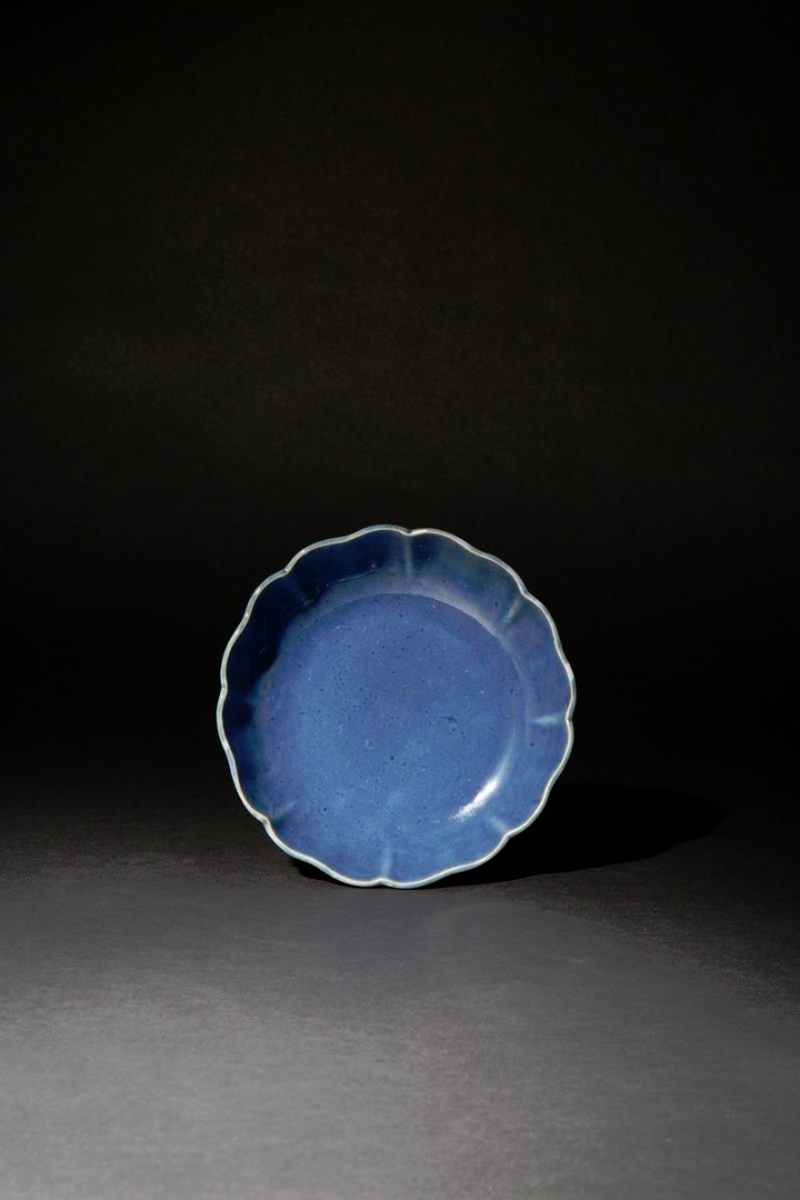 The lobed rim formed as petals, decorated in a smoky-blue glaze, 15.1cm.