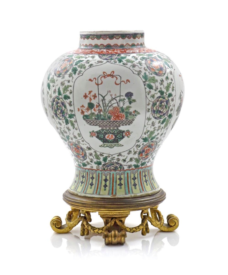 A CHINESE FAMILLE VERTE VASE 19TH CENTURY Decorated with four panels of baskets on a floral ground