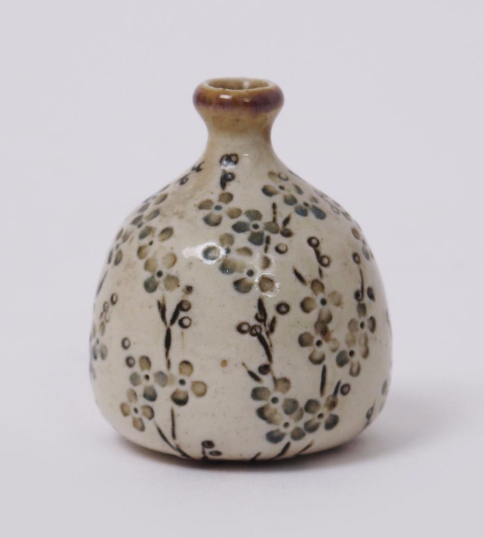 A Martin Brothers stoneware miniature vase by Edwin & Walter Martin, dated 1904, shouldered ovoid form with collar neck, incised and painted with forget me not flowers in blue and brown on a mushroom ground incised 1904 Martin Bros London & Southall 4.5cm. high