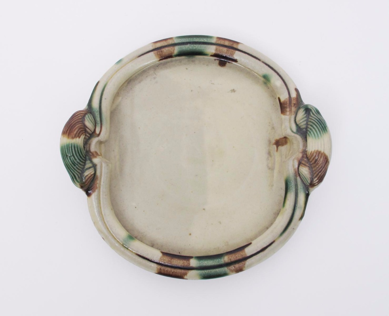 a twin-handled stoneware platter, decorated in a sansai glaze unsigned 28cm. wide