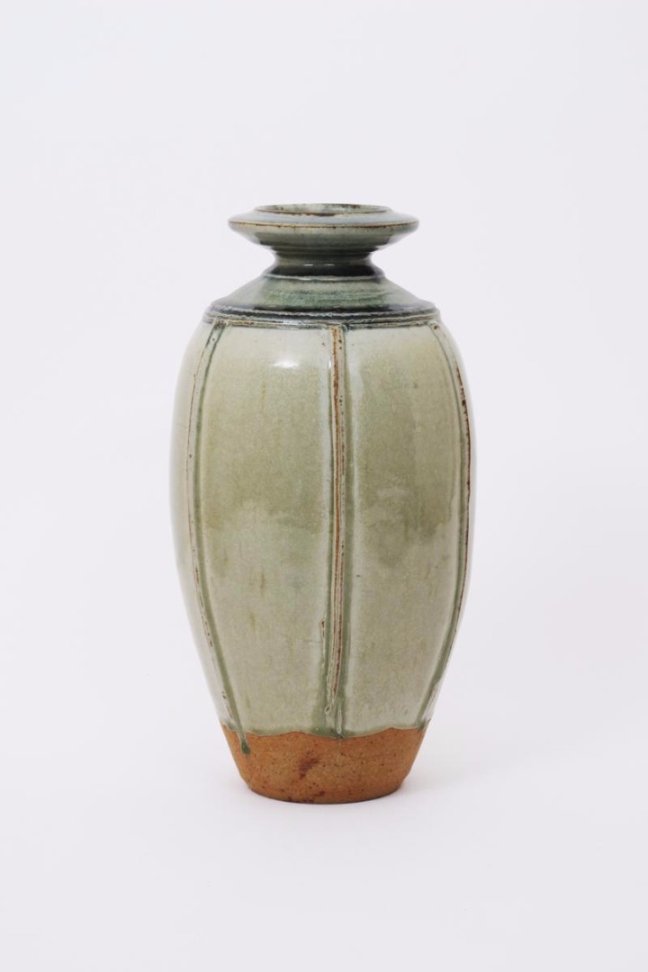 Richard Batterham (born 1936) a tall shouldered stoneware vase with cut rib decoration