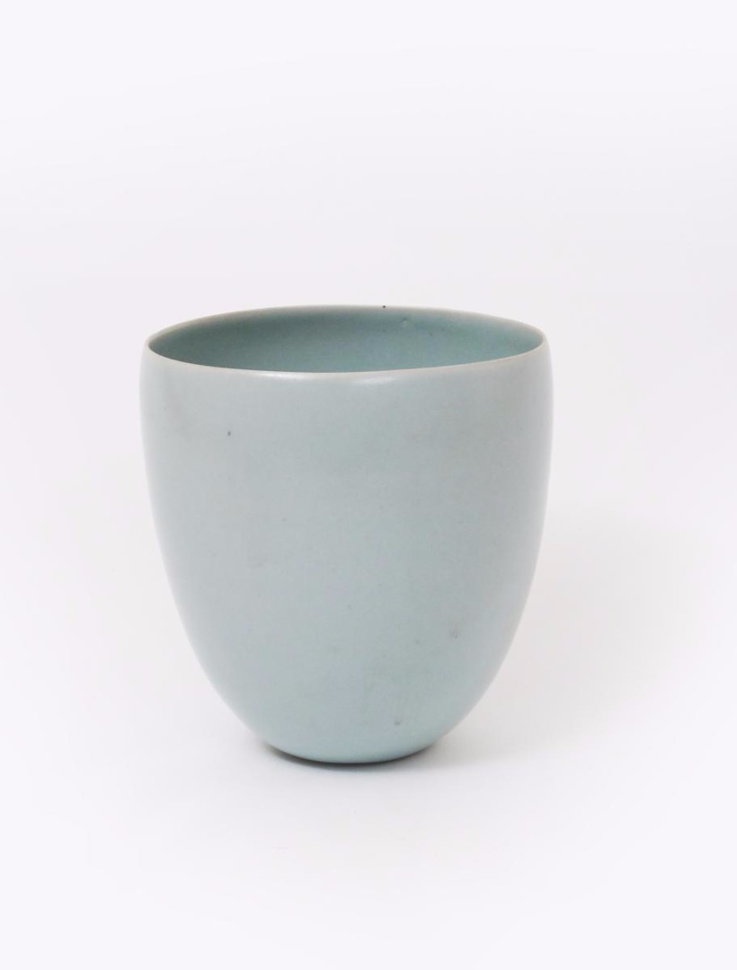 a porcelain vase, elliptical form, covered in a duck egg blue glaze impressed C seal 15.5cm. high