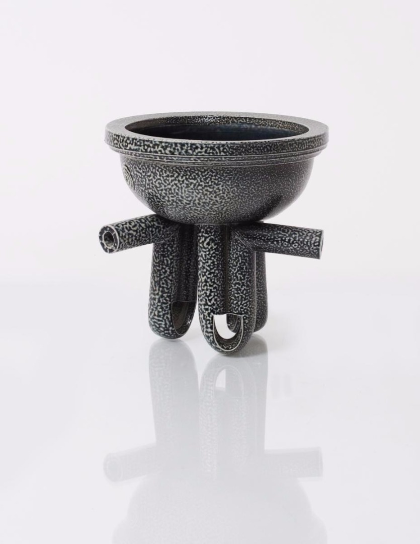 ‡ Walter Keeler (born 1942) a salt-glazed stoneware vessel on three pipe feet