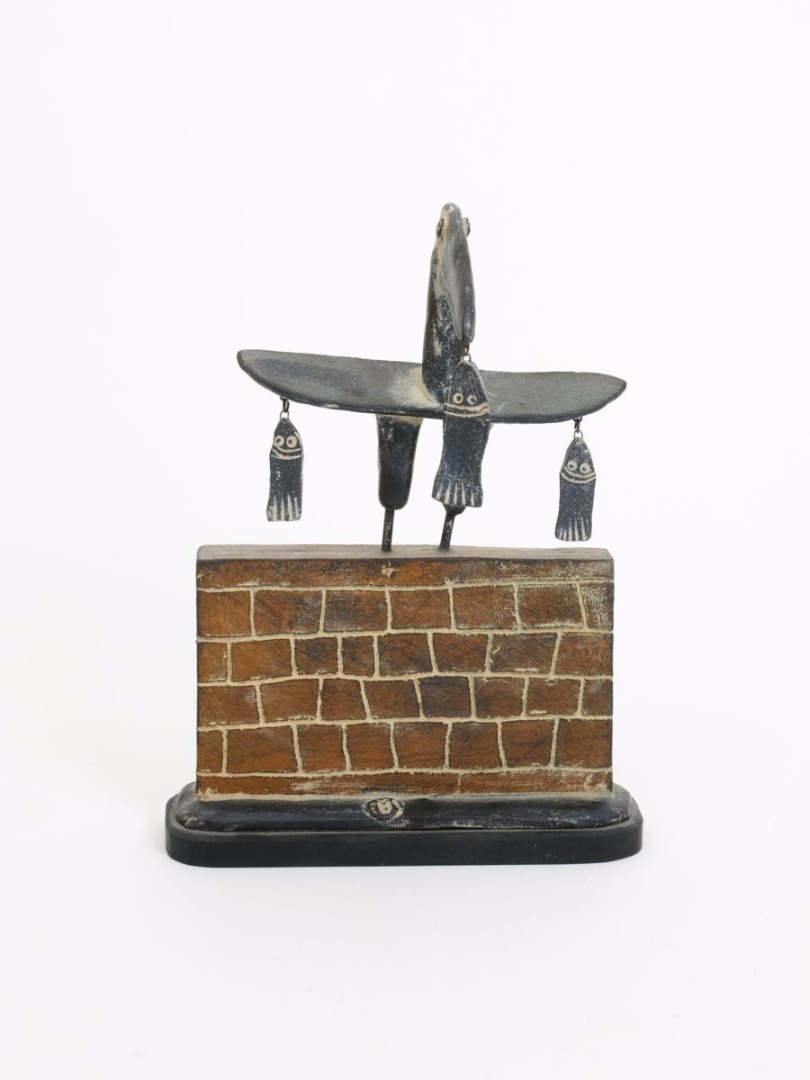 Seabird and Wall, a stoneware sculpture, on ebonised wood base impressed seal mark, painted signature and title, tape catalogue number, 31cm. high