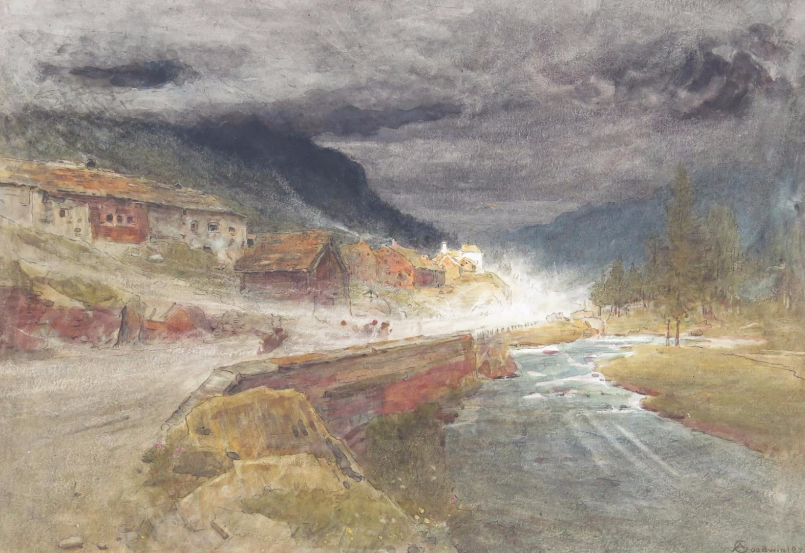 Albert Goodwin R.W.S. (1845-1932) Storm on the Simplon Pass Signed and dated 82 Watercolour with...