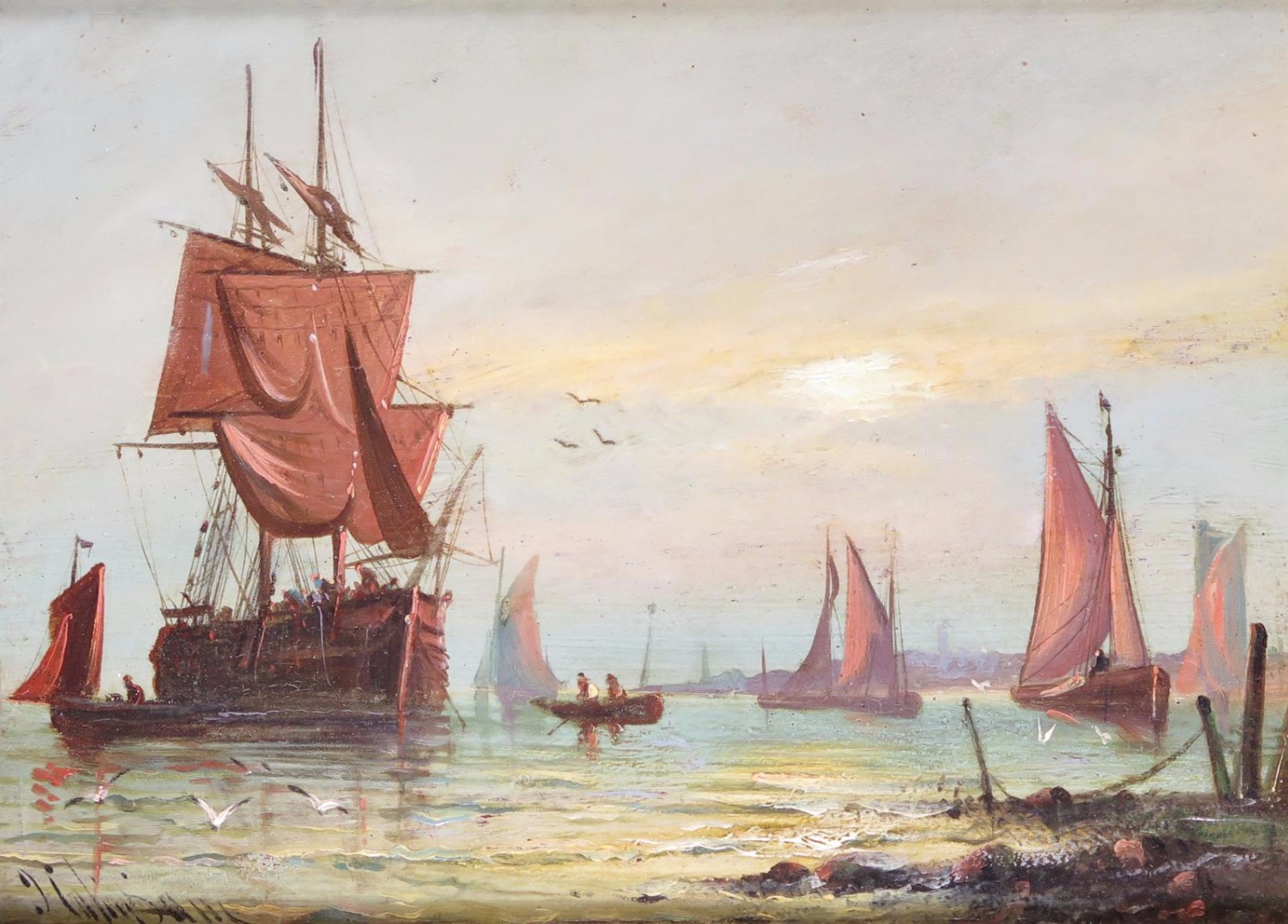‡ James Christison (20th Century) Boats by the shore Signed Oil on panel 23 x 30.5cm