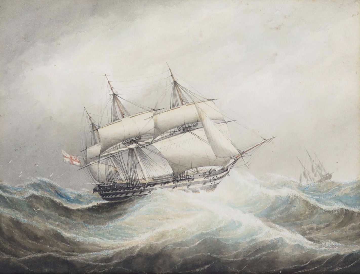 A Royal Naval 74-gun two decker under shortened sail