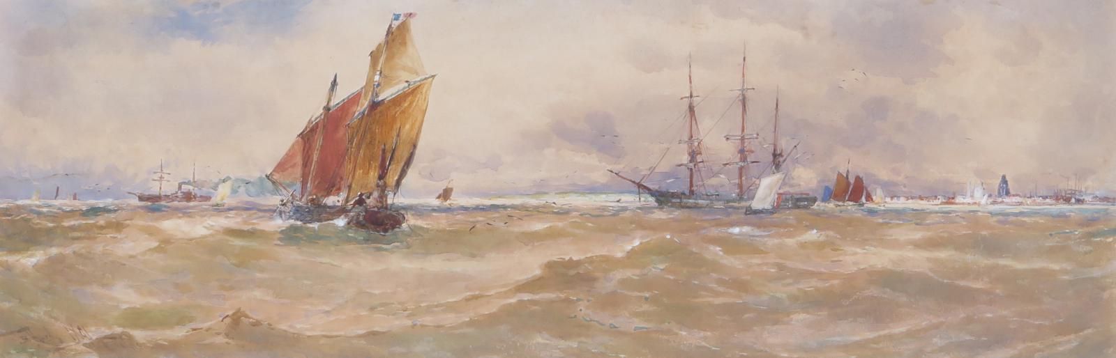 Thomas Bush Hardy R.B.A. (1842-1897) Off Calais Signed and titled Watercolour 15 x 46.5cm; 6 x 18¼in