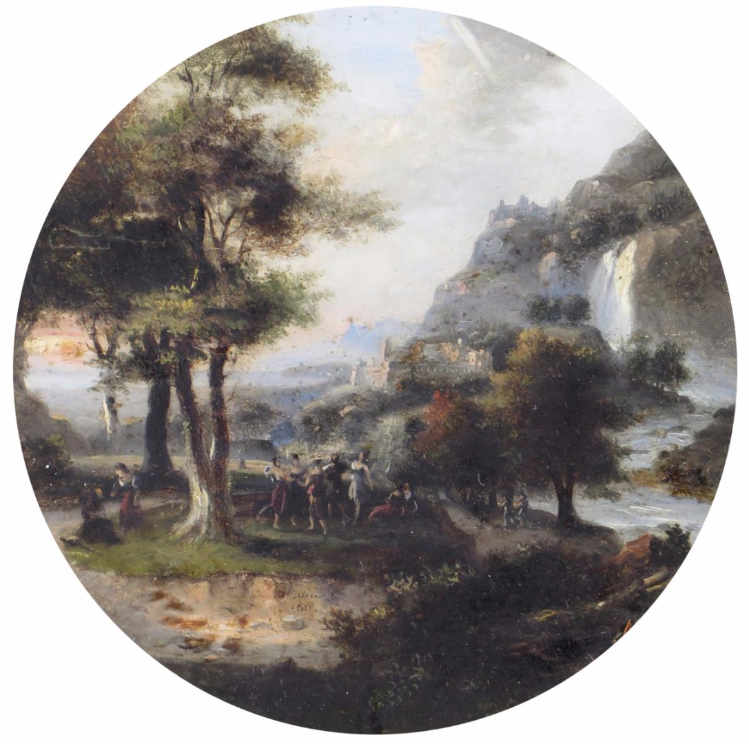 Continental School early 19th Century Figures in an Italianate landscape Signed indistinctly and...