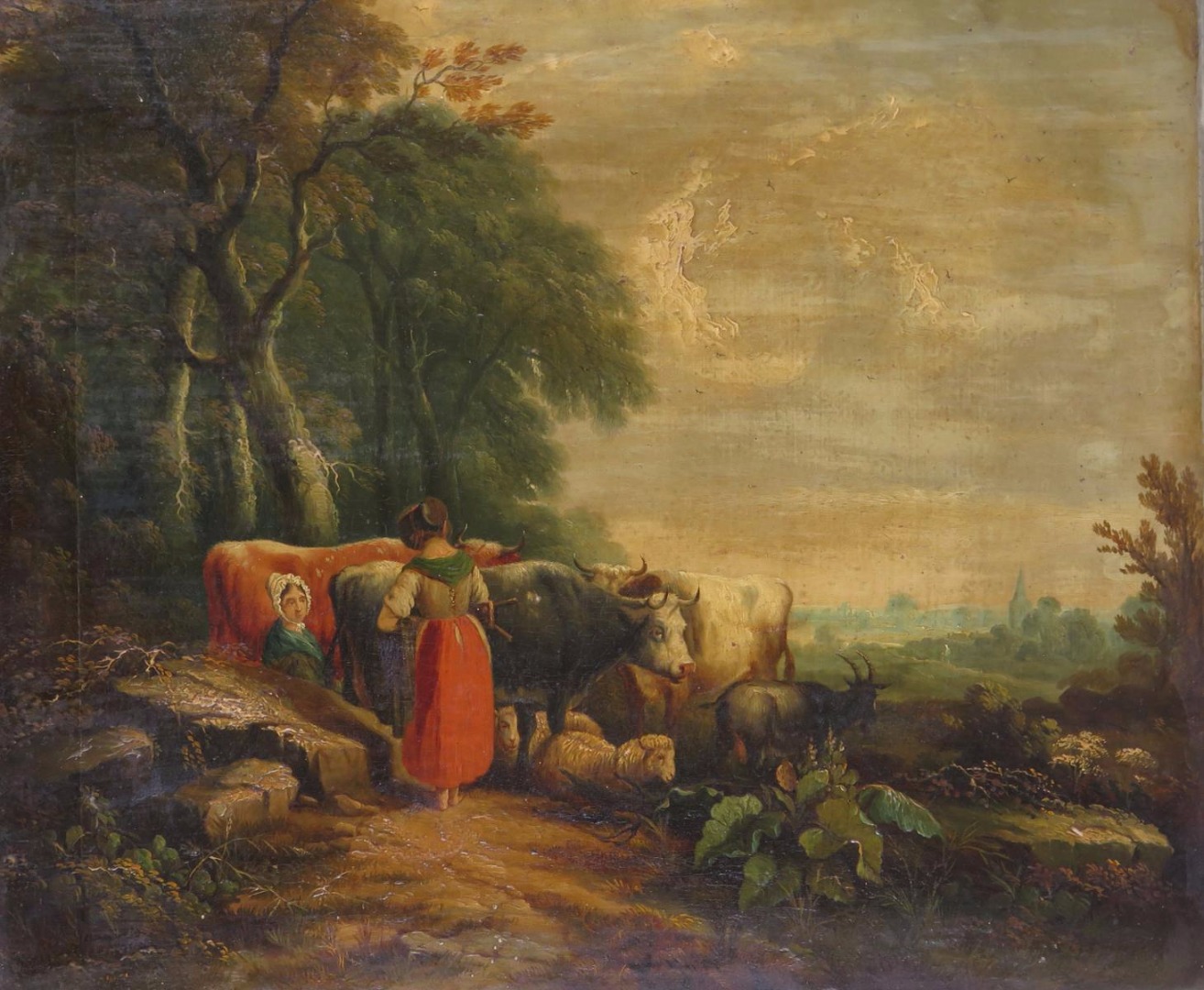 Follower of George Morland The milkmaid Oil on canvas 51 x 61cm; 20 x 24in