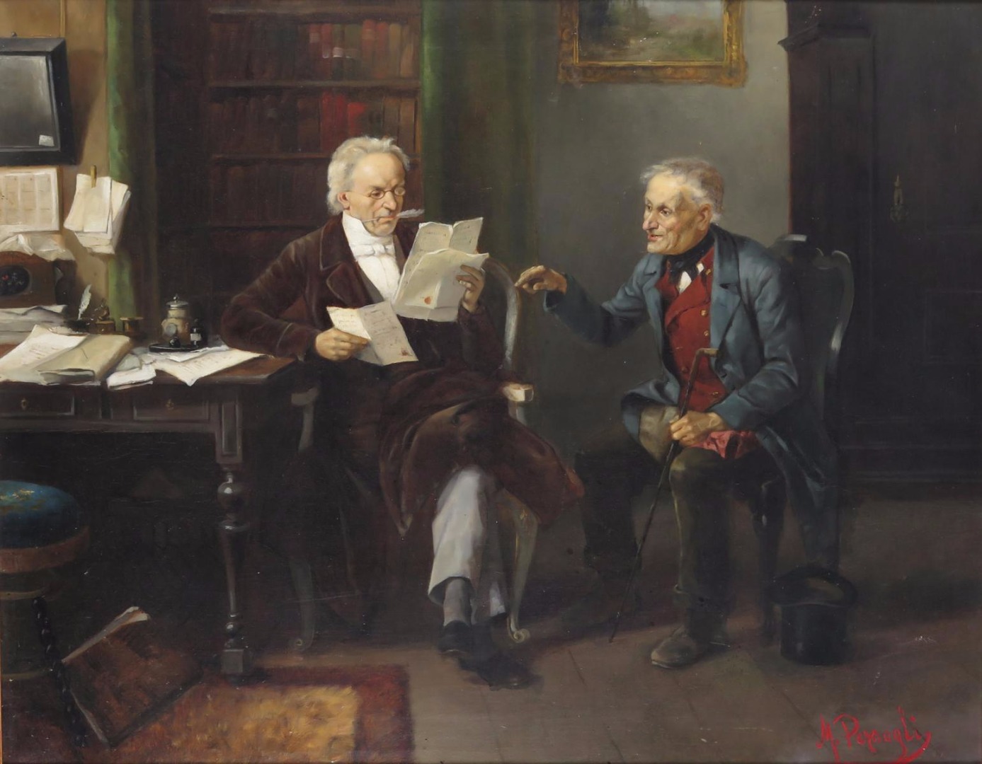 Continental School 19th Century Reading the Will Bears signature Oil on canvas 55.5 x 68.5cm; 22...
