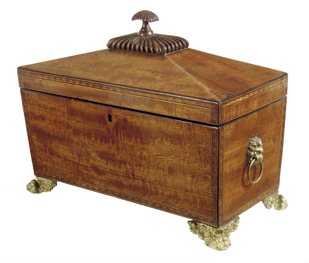 A George IV mahogany sarcophagus shaped tea chest